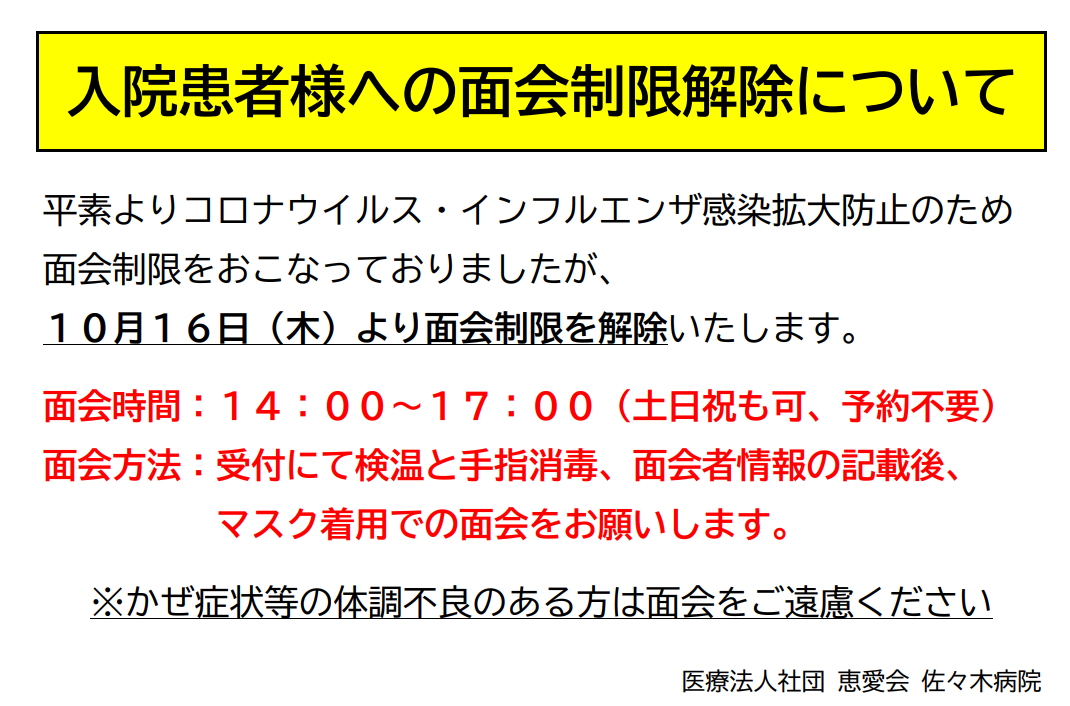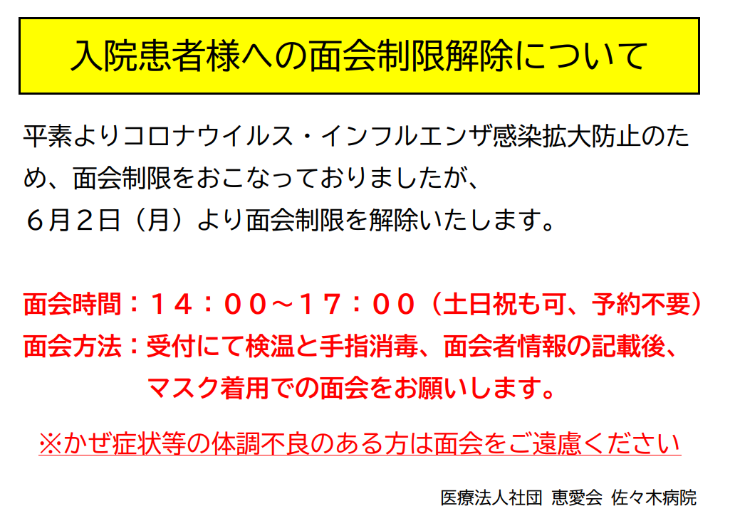 面会制限解除のお知らせ